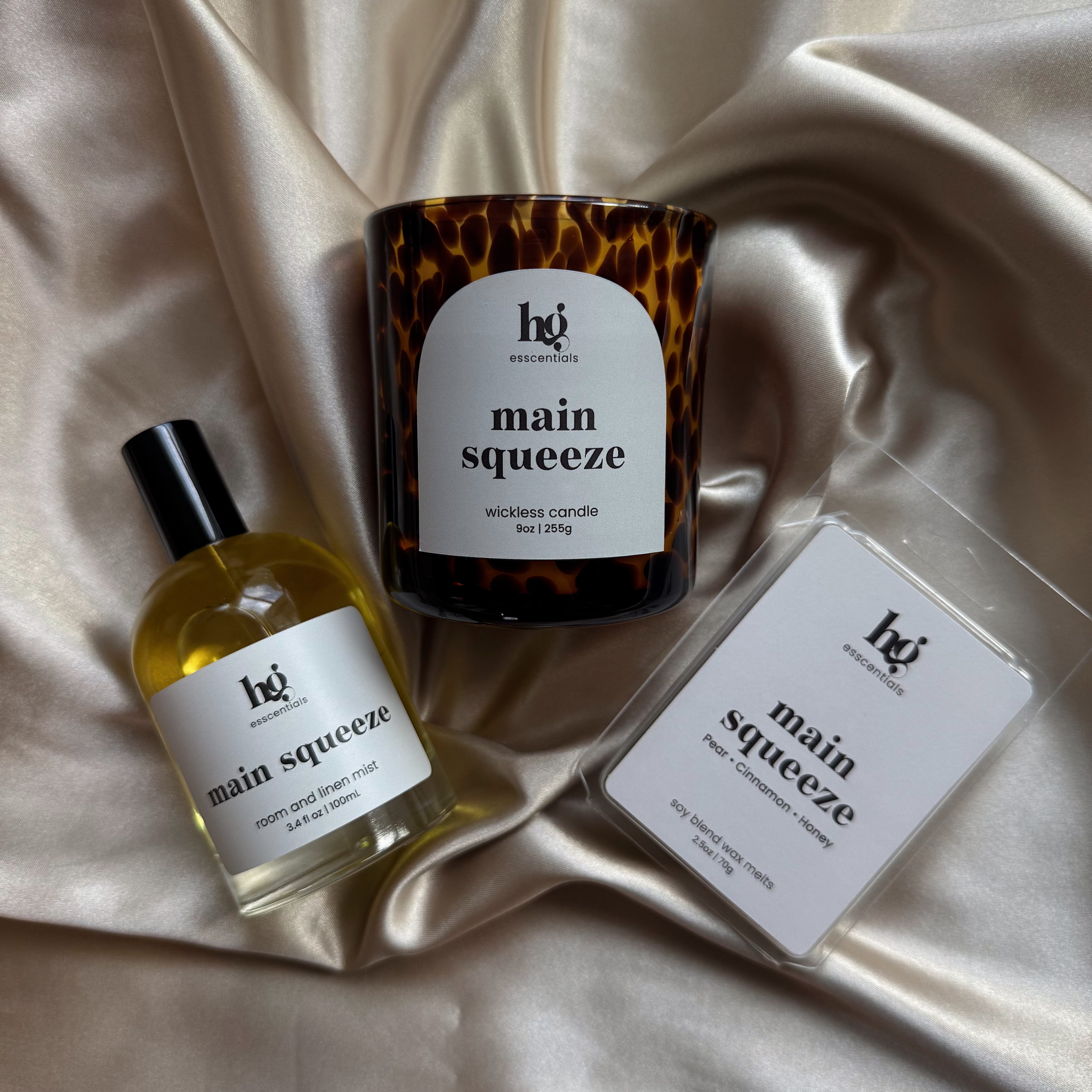 Juicy and a little bit sweet, Main Squeeze is the scent that keeps you coming back for more. Ripe sugar pear and crisp orchard apple meet golden honey for a fragrance that’s fresh, flirty, and perfect for cozy nights in—or whoever you invite over.